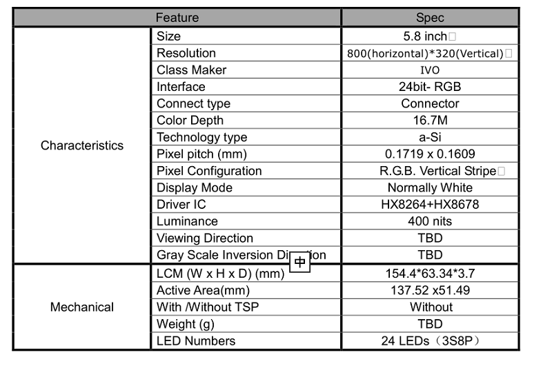 > 產(chǎn)品中心 > 定制液晶屏 > 5.8寸電容觸摸長條屏