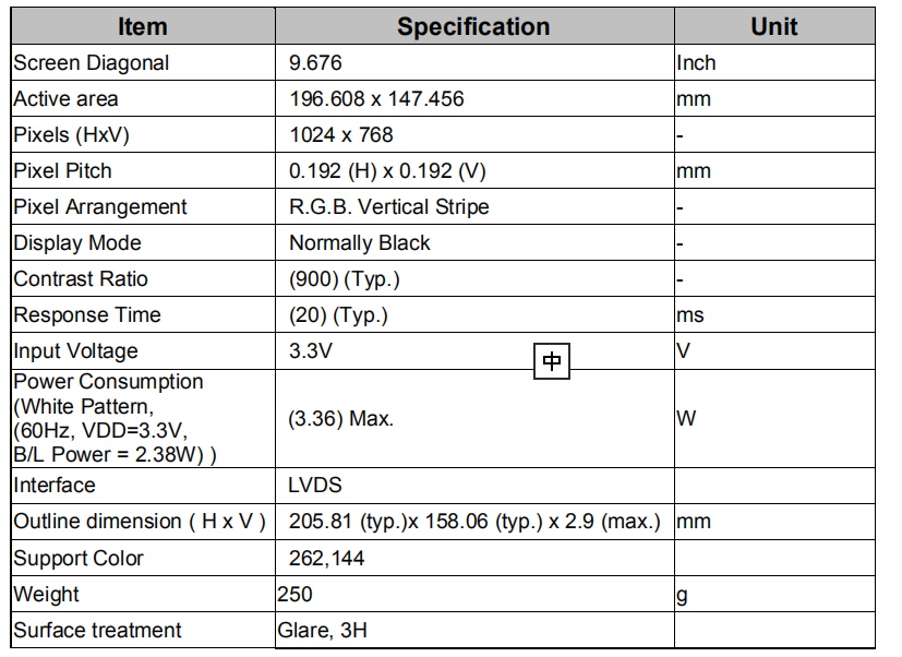 品名: 9.7寸液晶顯示屏