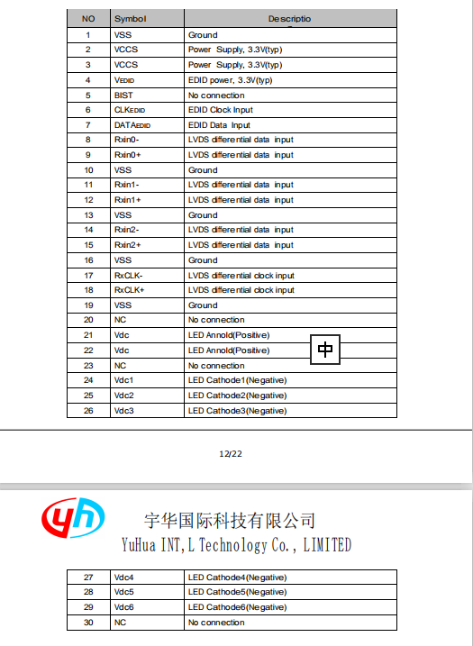 接口:LVDS 30PIN