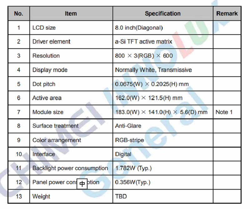 品名: 8寸普清電容觸摸顯示屏