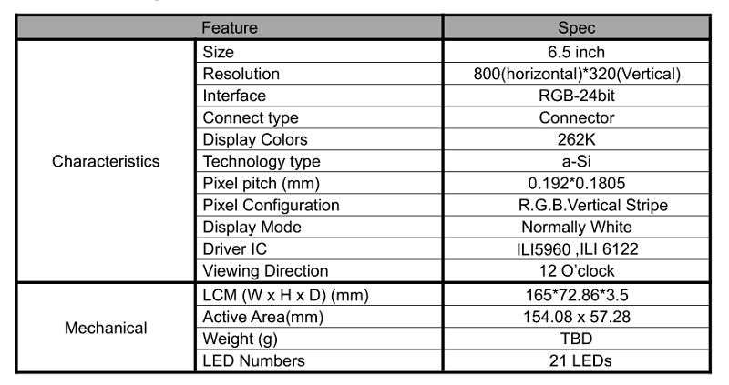 > 產(chǎn)品中心 > 定制液晶屏 > 6.5寸長(zhǎng)條屏