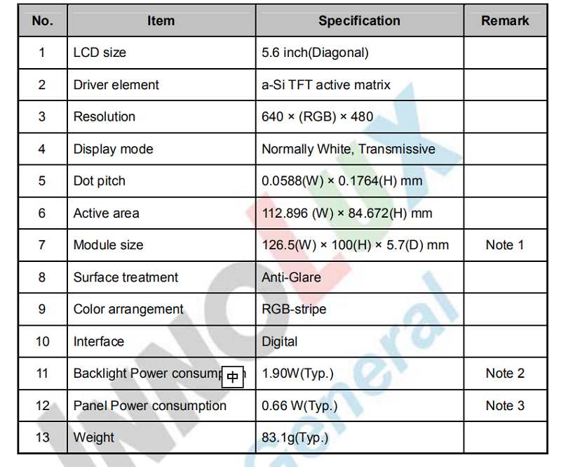 品名: 群創(chuàng)5.6寸4:3帶TCON原裝屏