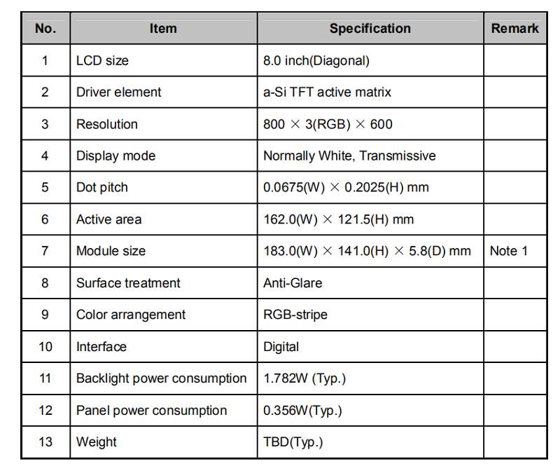 > 產(chǎn)品中心 > 宇華液晶屏 > 8寸普清液晶屏(800*600)