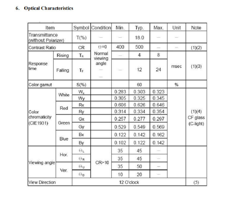 可視角度: 45/45/50/20